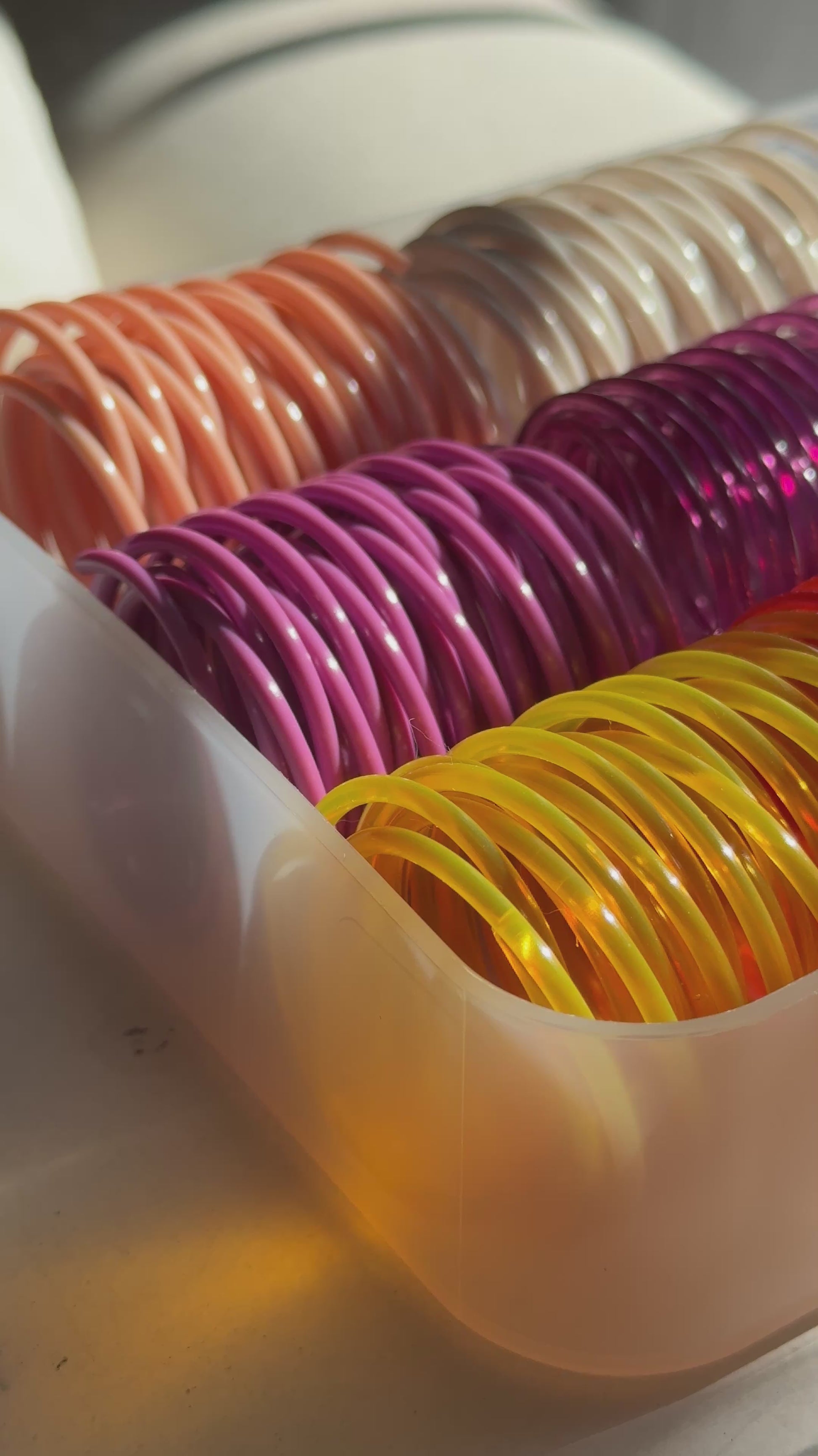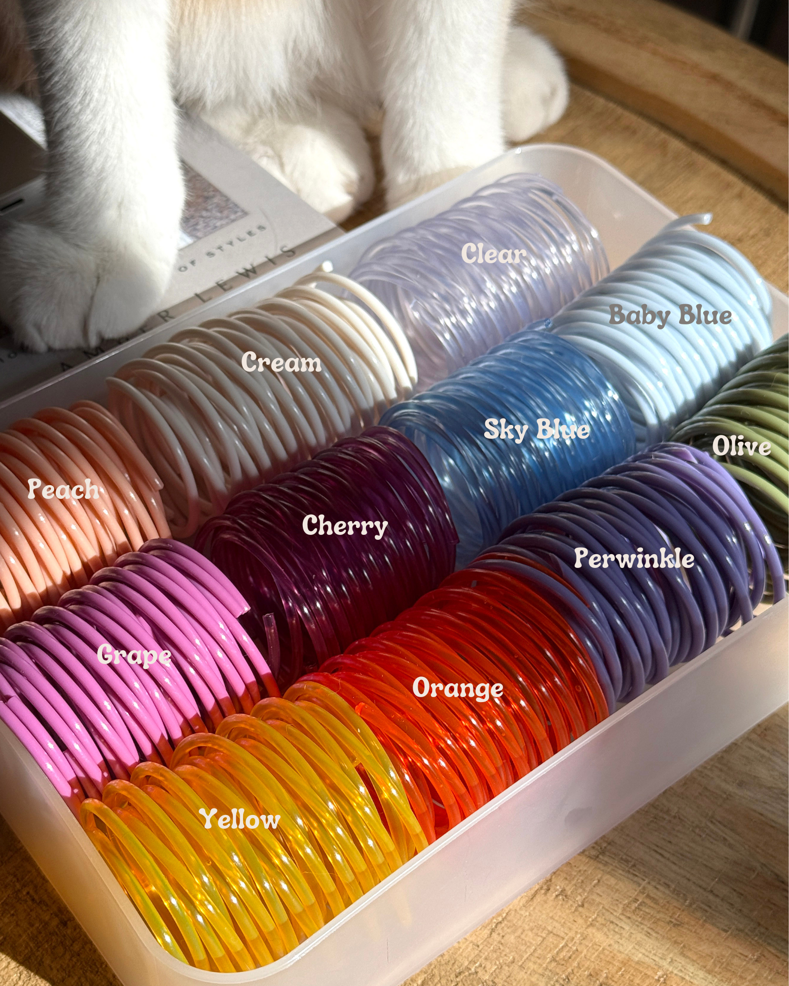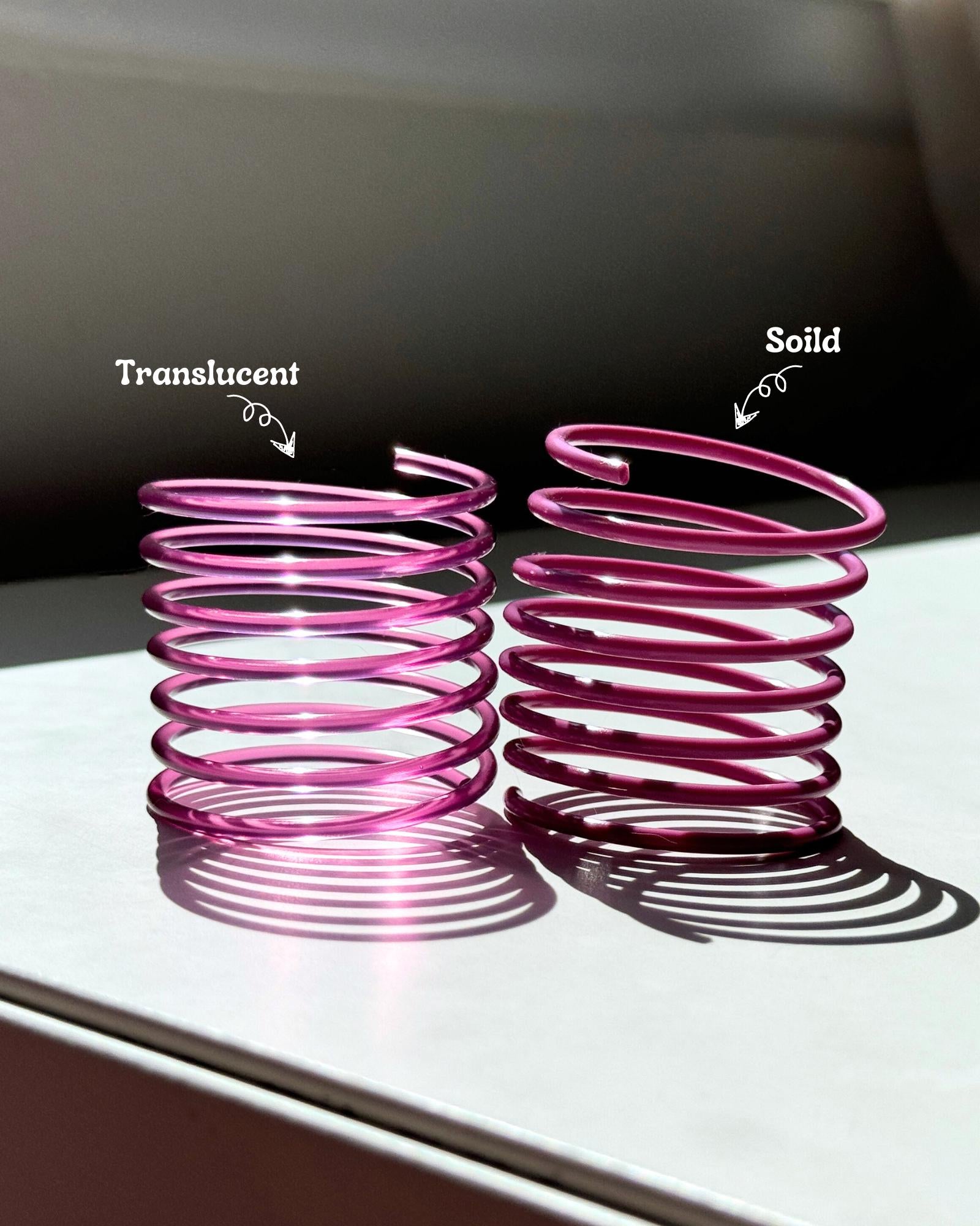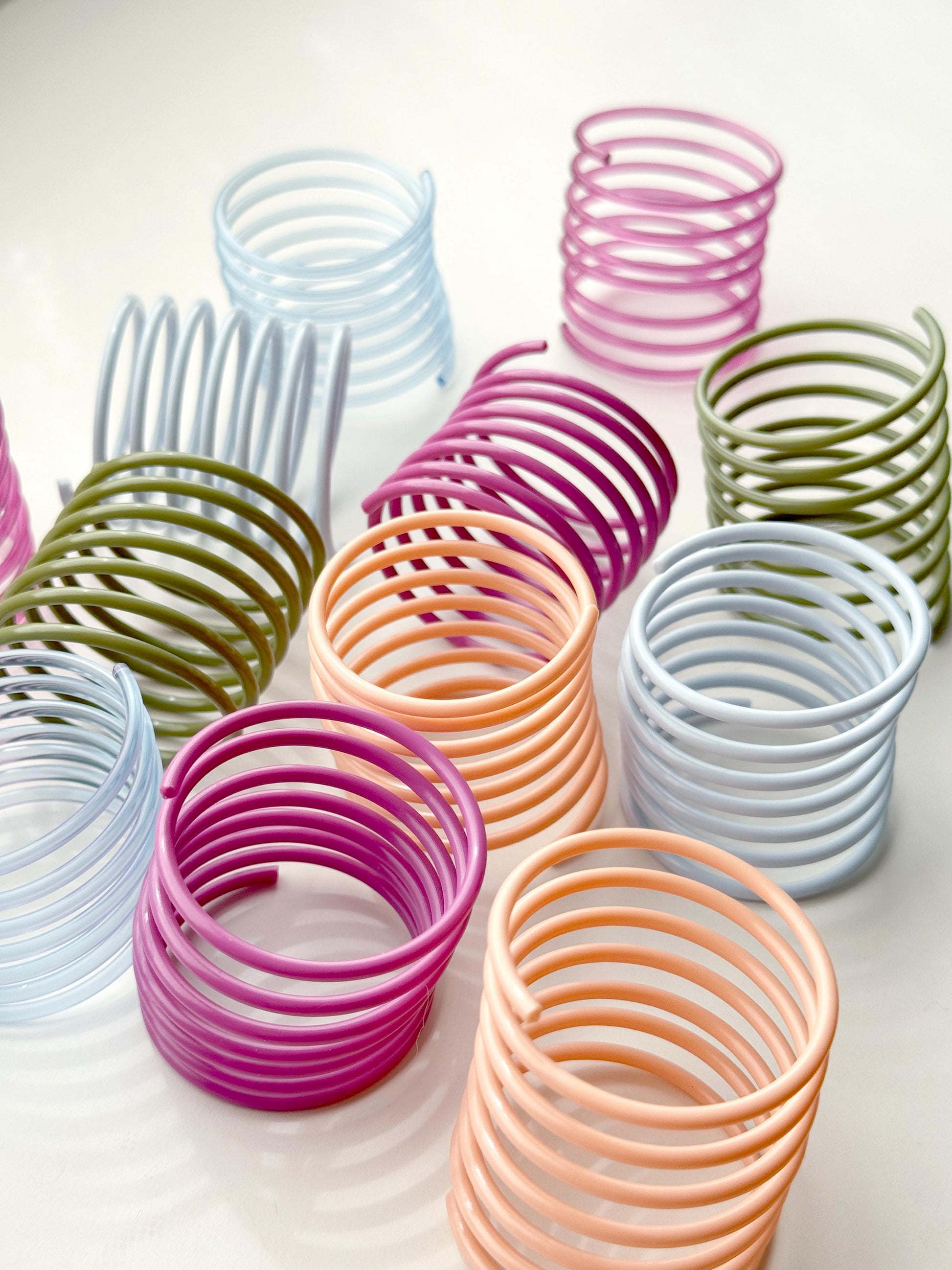 Available in 7 different colors - translucent orange, translucent yellow, translucent wine, translucent navy, solid periwinkle, solid cream white & clear. Each pack comes with 5 springs of your chosen color.